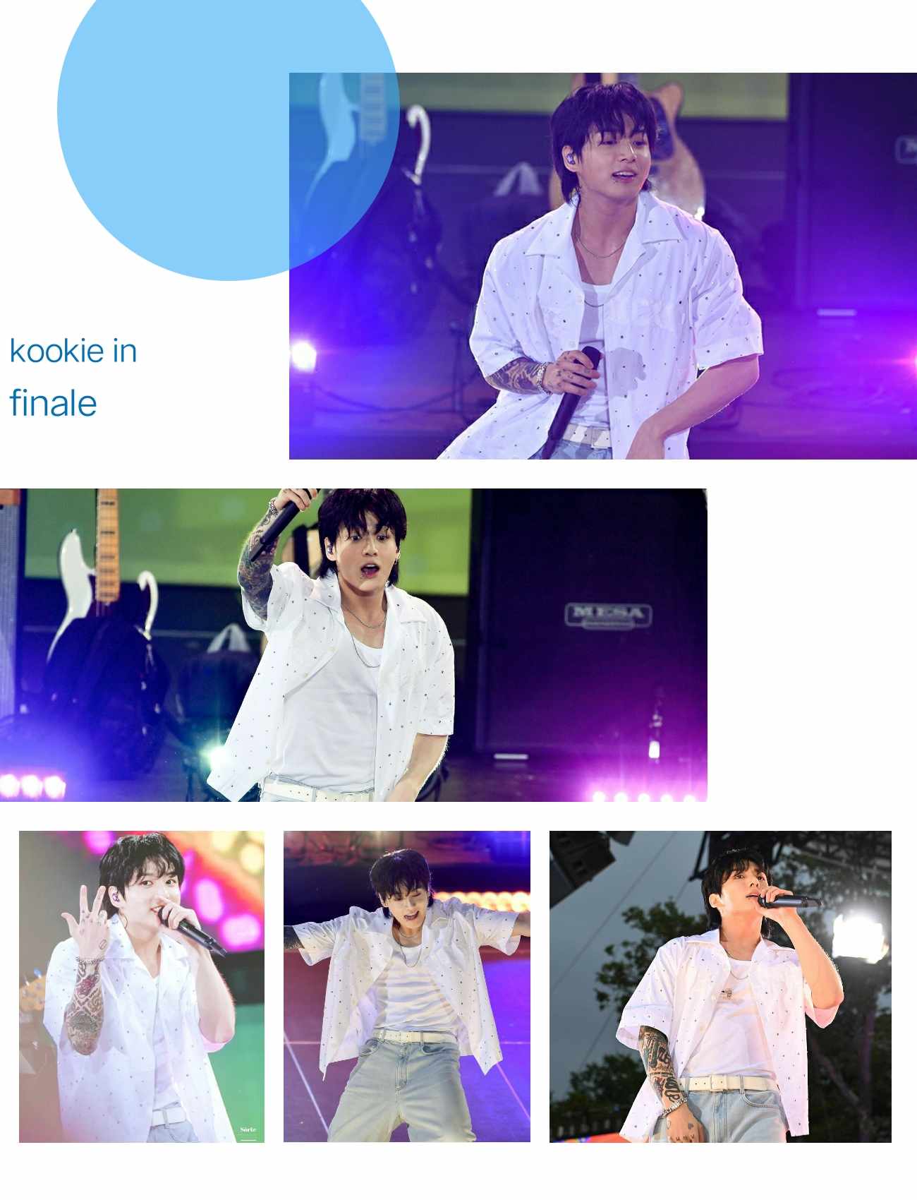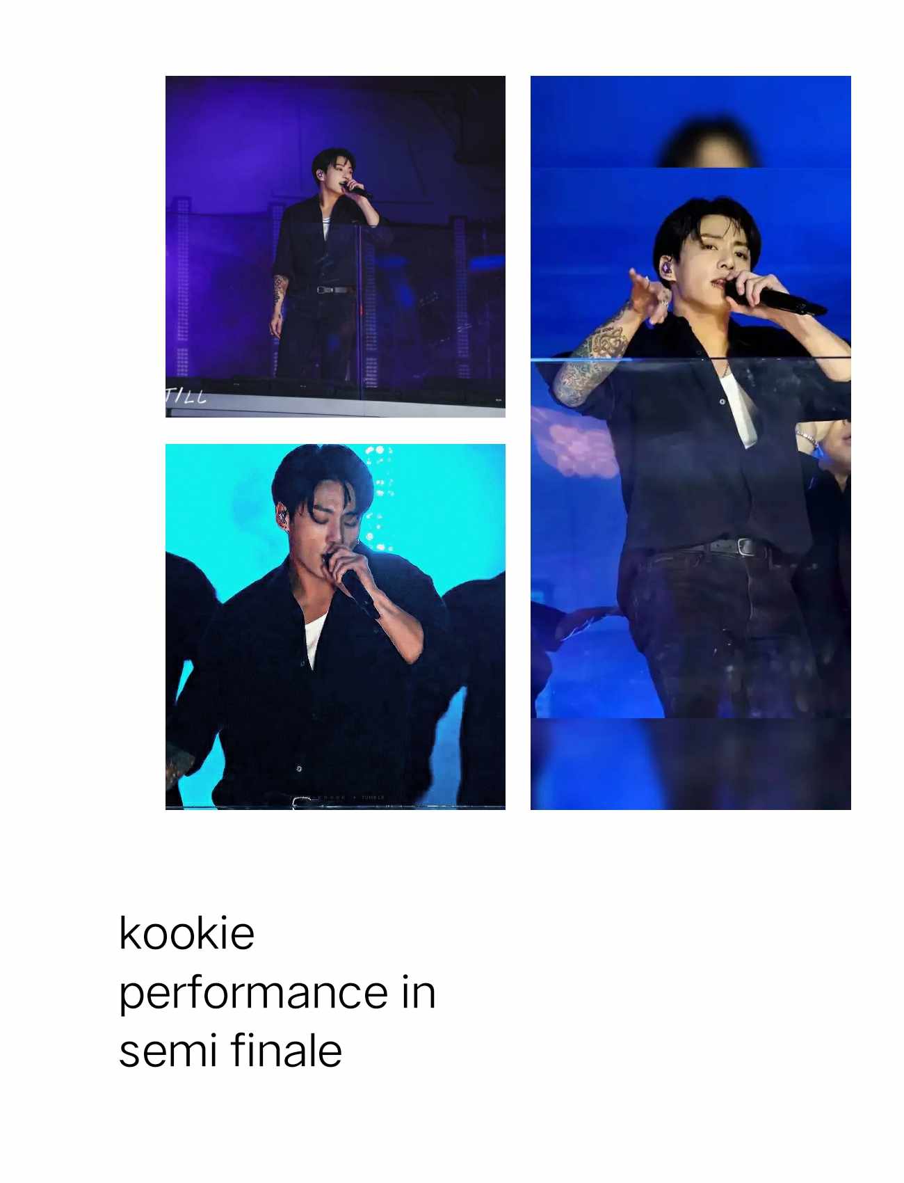 When kookie came to perform tae motivated him and everyone cheered for him.... And as usual kookie gave his best.... Performed saveral songs changing cloths accordingly.....Sang with full energy creating powerful energetic melodious angelic vibe through his singing..... One's his done everyone stood up and cheered for him.... Everyone was in awe😍 and impressed by his performance like always.... Judeges praised him.... And tae was so proud and happy for his bestie kookie....😍