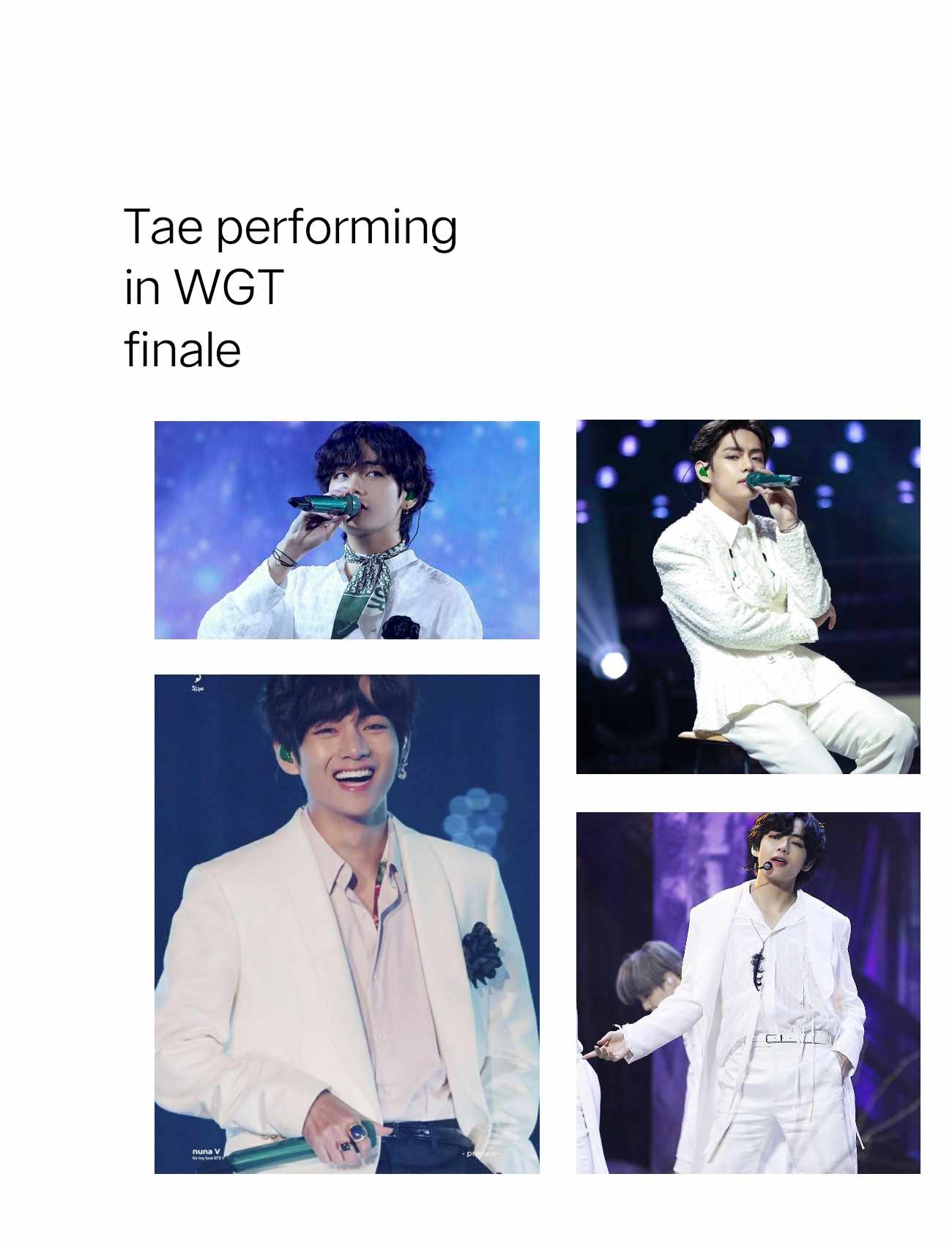 Then show begin.... And all 5 participants first came and performed their solo's..... When tae came to perform kookie motivated him and everyone cheered for him.... And as usual tae gave his best.... Performed saveral songs changing cloths accordingly.....Sang with full energy creating powerful energetic melodious angelic vibe through his singing..... One's his done everyone stood up and cheered for him.... Everyone was in awe😍 and impressed by his performance like always.... Judeges praised him.... And kookie was so proud and happy for his bestie tae....😍