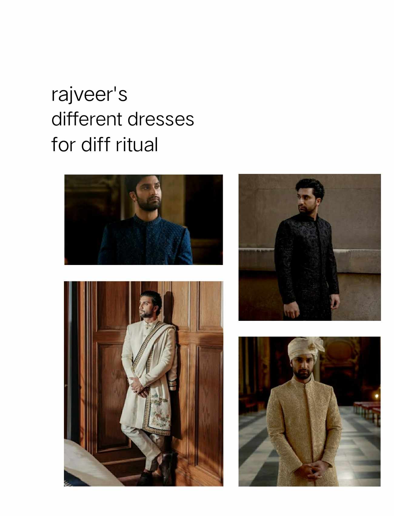Then rajveer also selected his wedding dresses according to different functions.....