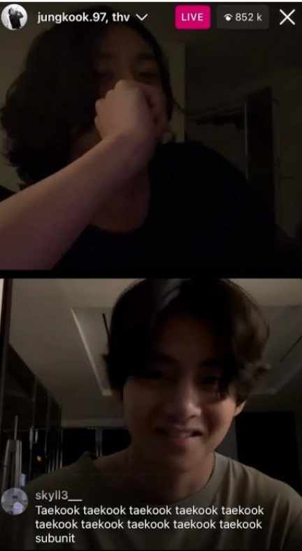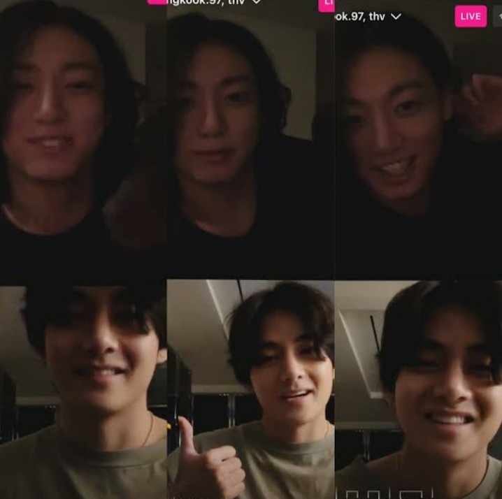 (The comments are flying: “TAEKOOK LIVE!!!”, “OMG together again??”, “Roommates??”, “Where is this?? It looks cozy!”..... You're live from same room right?? But from different angle.....)