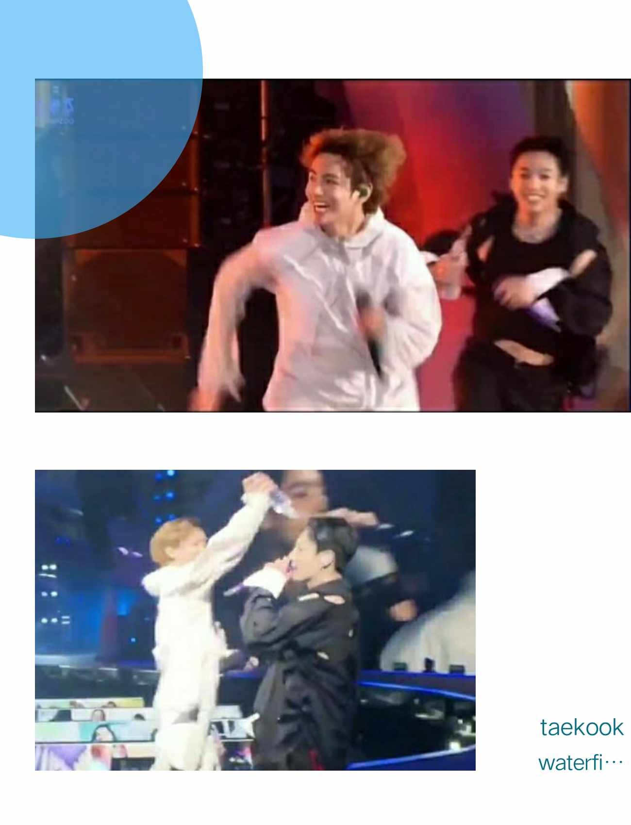 Tae chased kookie with a water bottle, finally managing to spray him. kookie turned, grabbed his hyung around the waist, and swung him in a full circle before they both doubled over laughing.