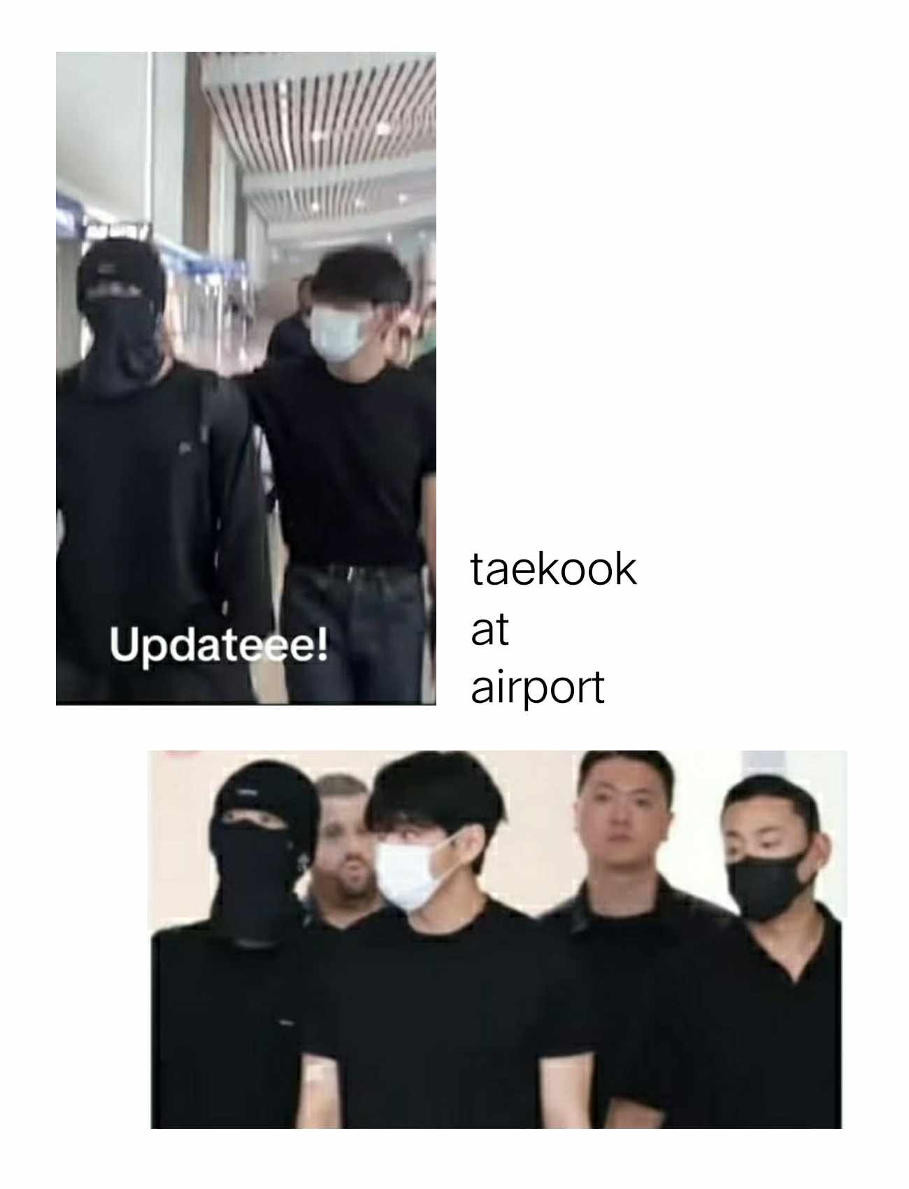 kookie: (peeking out) “Hyung… they’re everywhere. How…? We didn’t even post our flight.”😑
