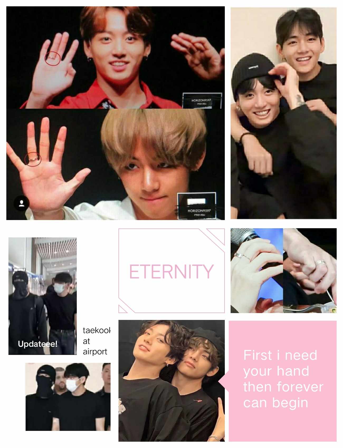 [Tae posts a some pics where tae is sitting hugging kookie, kookie sitting on tae's lap, airport scene and their blurry pics where their wedding rings can be seen......]
