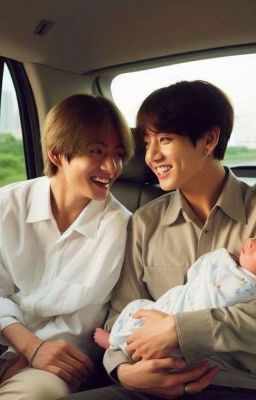 (Tae insisted on carrying both kookie and the baby to the car himself. kookie protested but secretly enjoyed it. Now, kookie sits in the backseat with baby in a carrier, Tae beside him, holding his hand the entire way.)