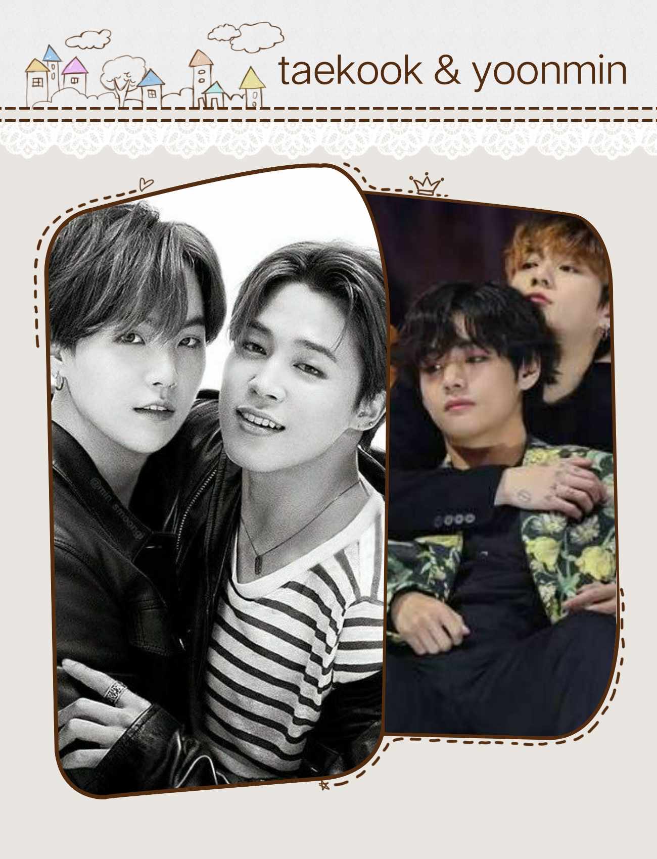 Tae: (cups his face) You won’t. But you have to trust me and our pure relationship, kookie.... I'm yours.... Only yours.....