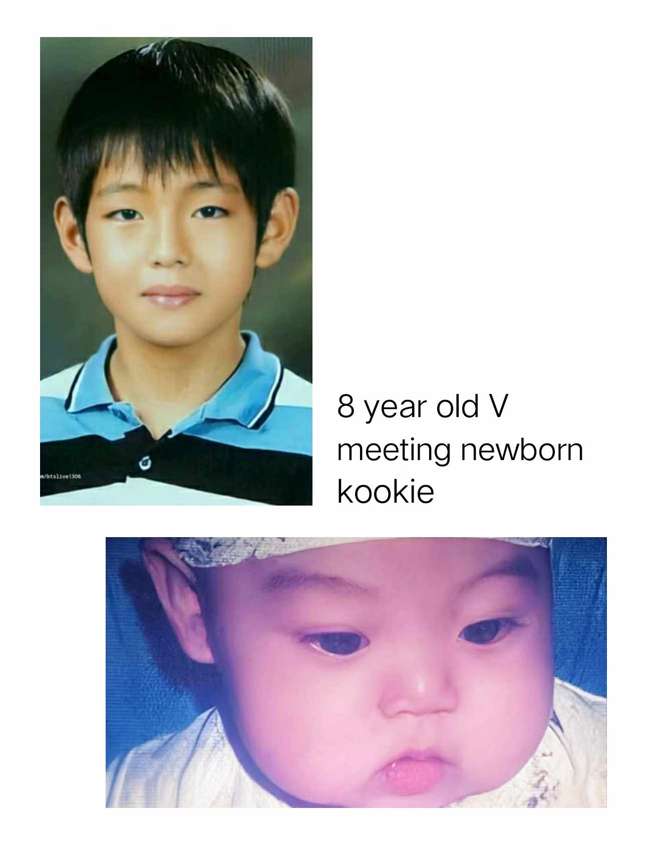 The 8 year old baby taehyung who was standing for long and was adoring the Baby with eyes full of love.... Had actually unintentionally and unexpectedly fallen in love at first sight.... Since he saw baby for first time after she's born......