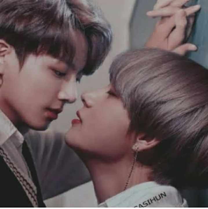 Hearing this kookie became so happy that he couldn't control himself from kissing tae's lips..... At first kookie kissed her softly and tae didn't responded that kiss.... But after 1/2 minutes later.... Tae also started to respond his kiss and that kiss turned into deep passionate liplock.... After 15 minutes of passionate liplock tae was breathless.....