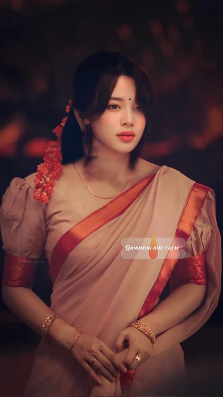 Then she came out...... She was fully ready..... She was wearing simple yet elegant white and red border banarasi saree with light makeup(kajal+ pink lipstick+ small bindi) .... Hair was opened.... She was looking cute and beautiful.....