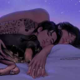Now we both were tired so we just lied on the bed.... She was laying on me..... It made me chuckled as she was looking so cute and tiny hugging me like a cute little bear.... So I just kissed her lips gently and slept while covering ourselves with blanket while hugging each other tightly....
